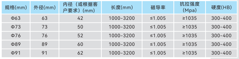 無磁鉆桿是定向鉆進隨鉆測量的配套設備。具有減小外界對隨鉆測量裝置的干擾、信號傳輸,輸送孔底馬達動力介質和鉆機動力傳遞等作用,是煤礦井下定向鉆具的重要組成部分,具有導磁率低。抗拉強度高和抗扭性能好的特性,為孔內測量系統提供不受鉆具磁性干擾的無磁環境,探管處的磁場與附近的大地磁場幾乎相等,因而能夠準確分辨鉆孔的地磁方向,確保測量系統的測量精度。